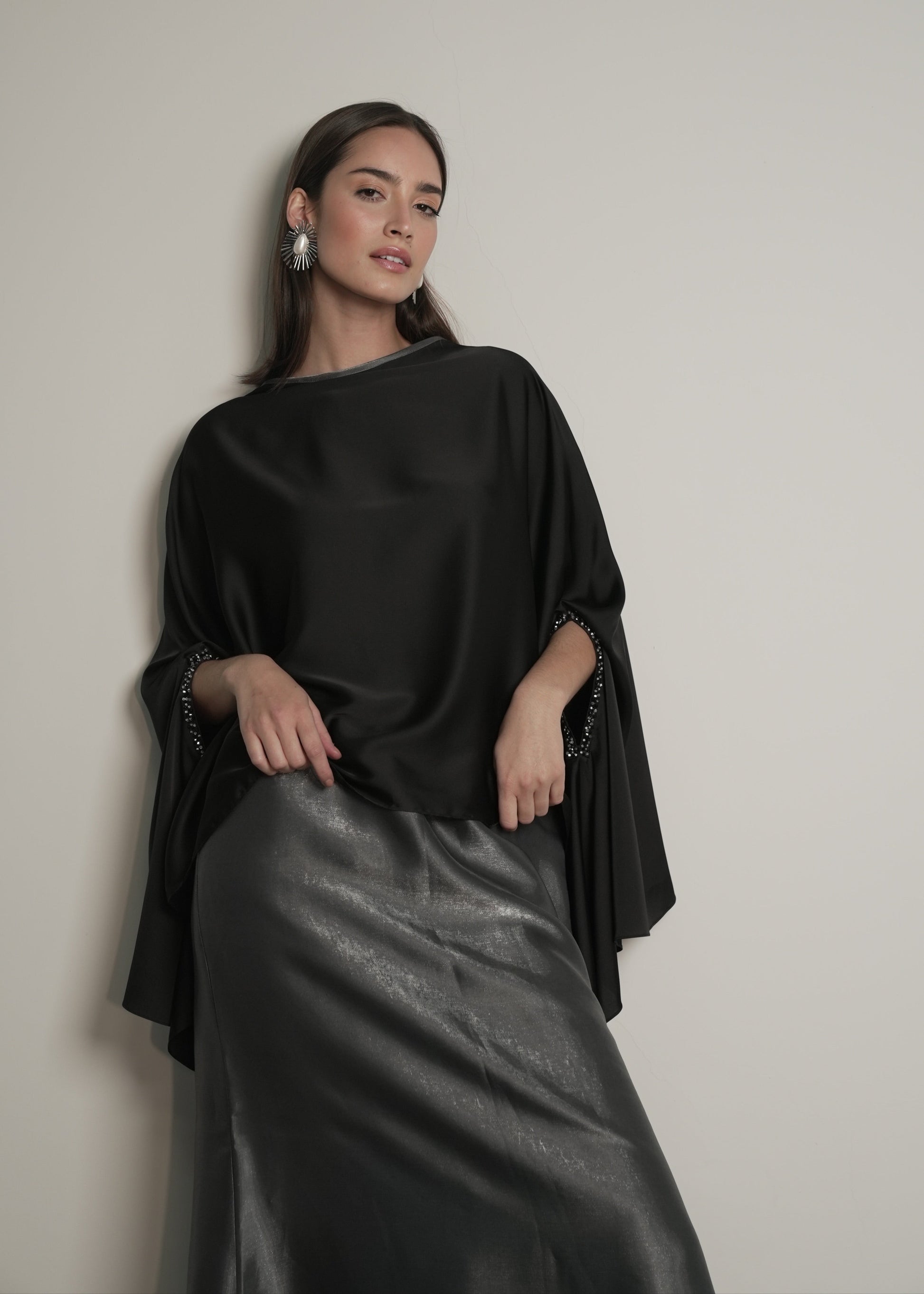 Material: Crafted from high-quality crepe for a soft, structured drape.