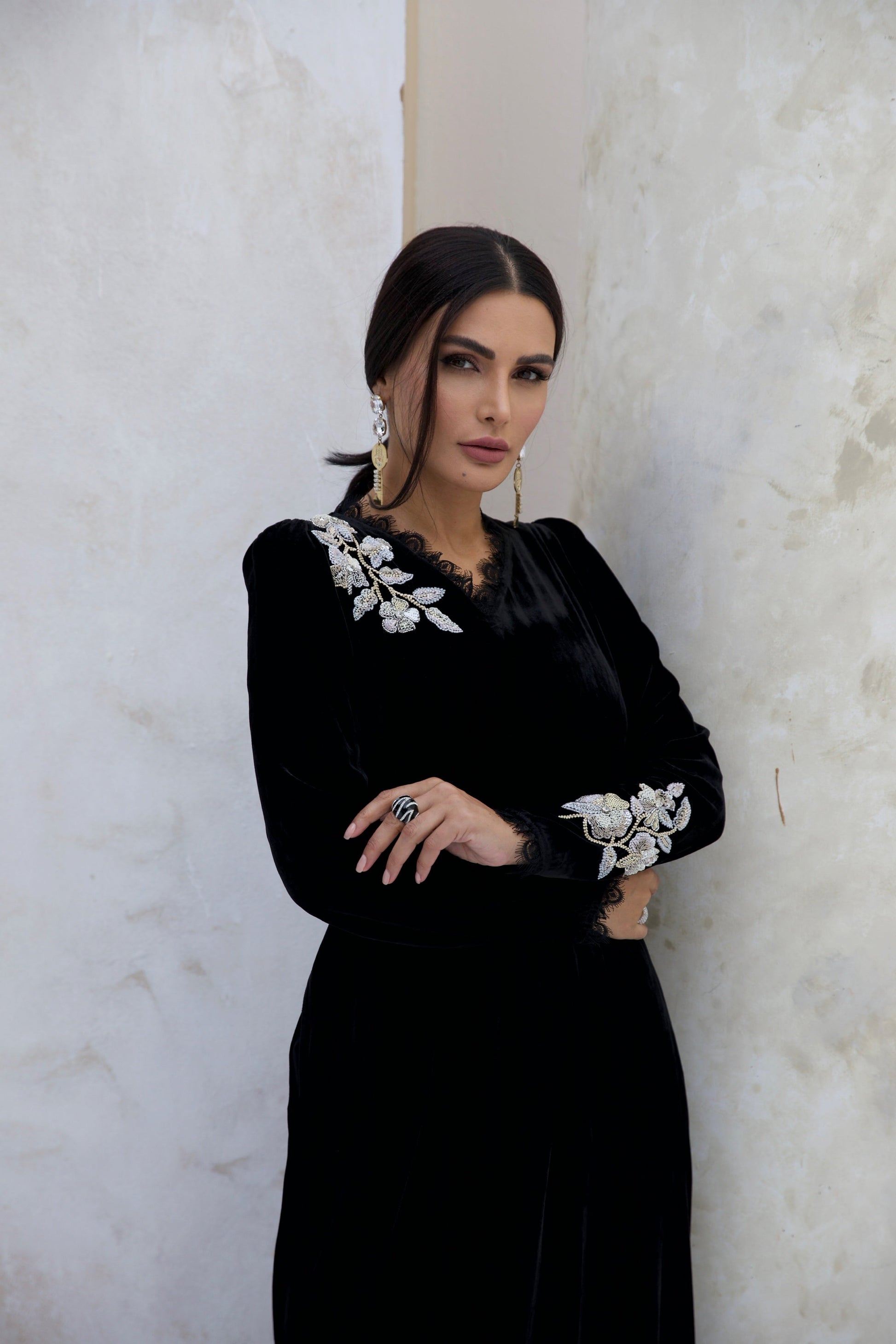 Crafted from the finest Royal Velvet fabric with hand embroidered details.