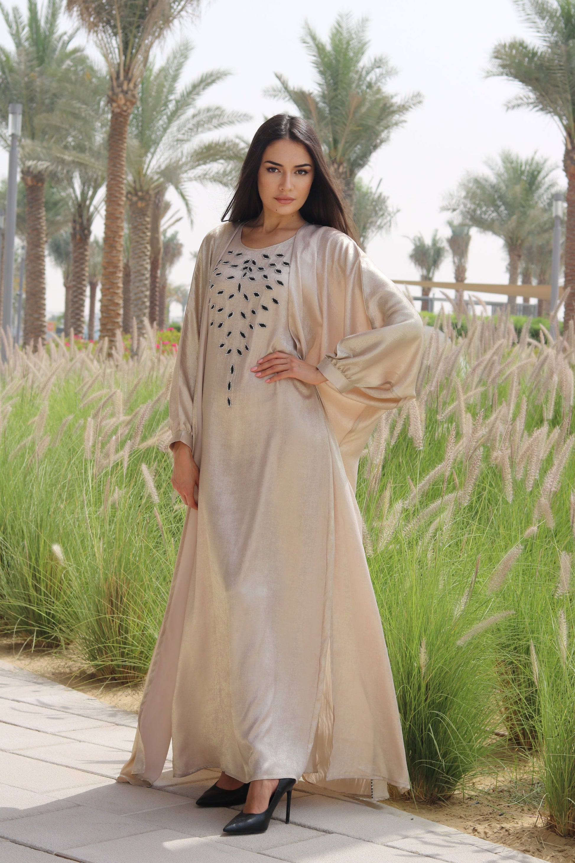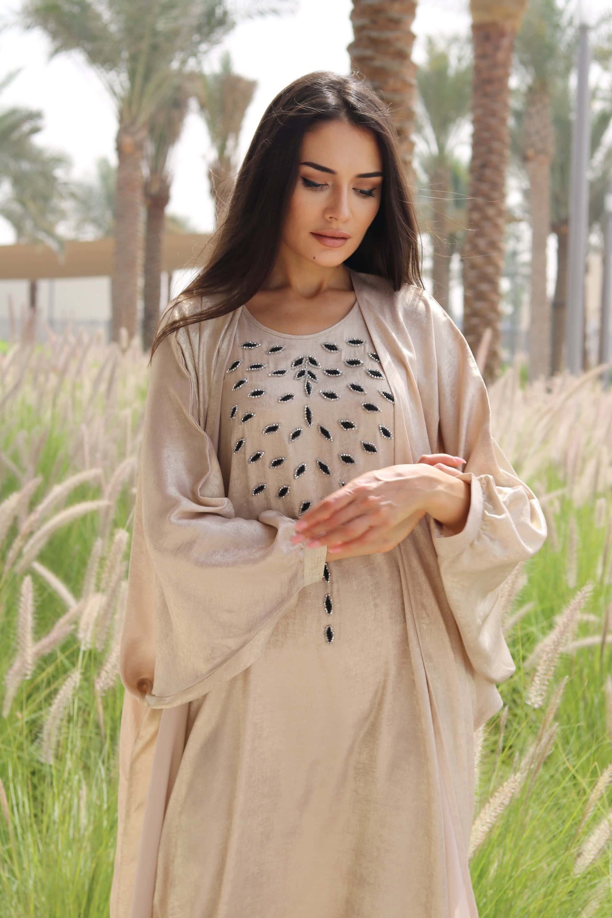 Note: Abaya is free-size, please choose size of the base dress. Length of the abaya is 150cm. For any length alterations, please leave a note at check out.