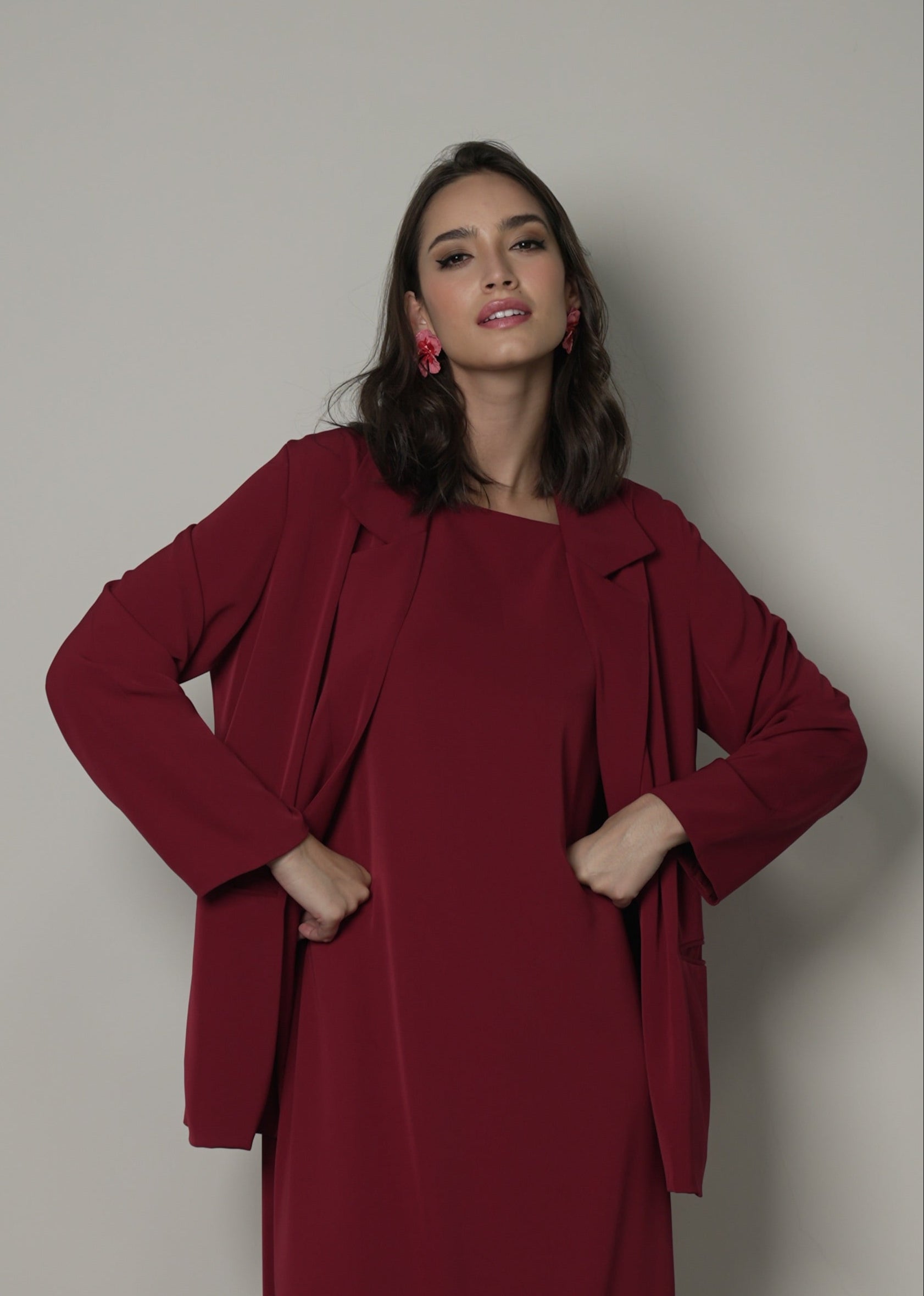 The Celine Set is a 2-piece outfit featuring a sleeveless maxi dress paired with a fluid, open gilet. Designed with clean lines, this set offers a perfect blend of comfort and elegance for everyday wear or special moments.