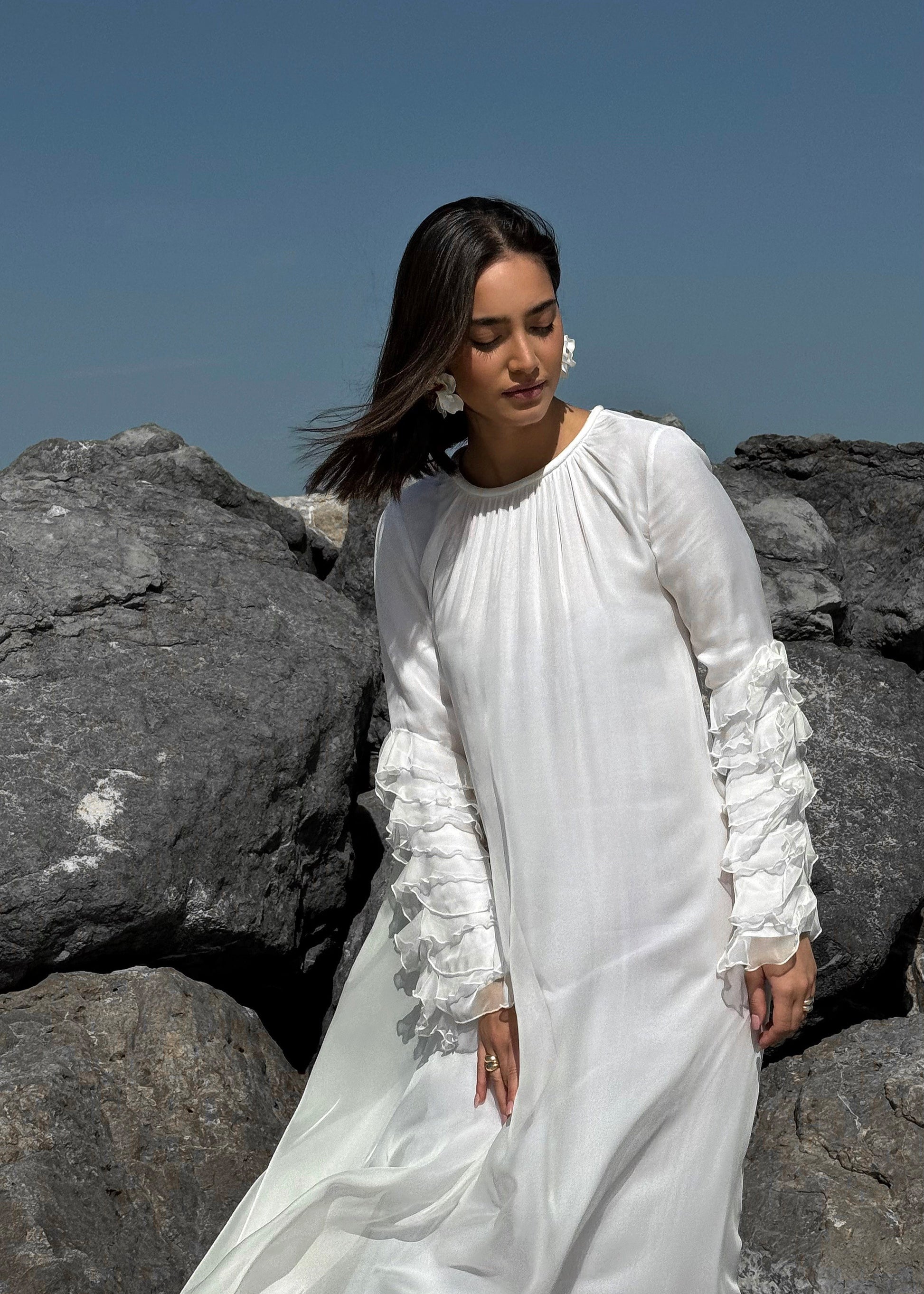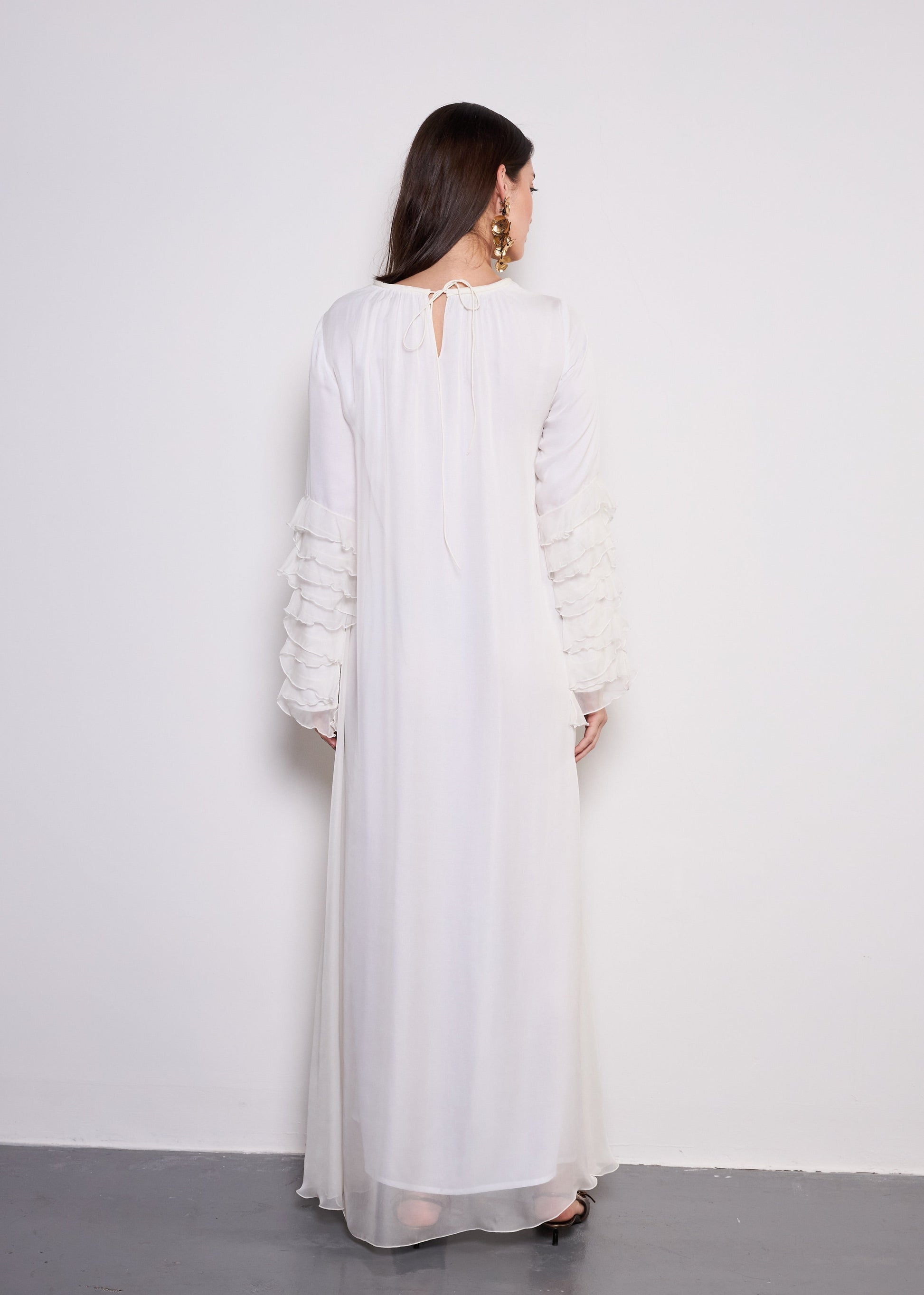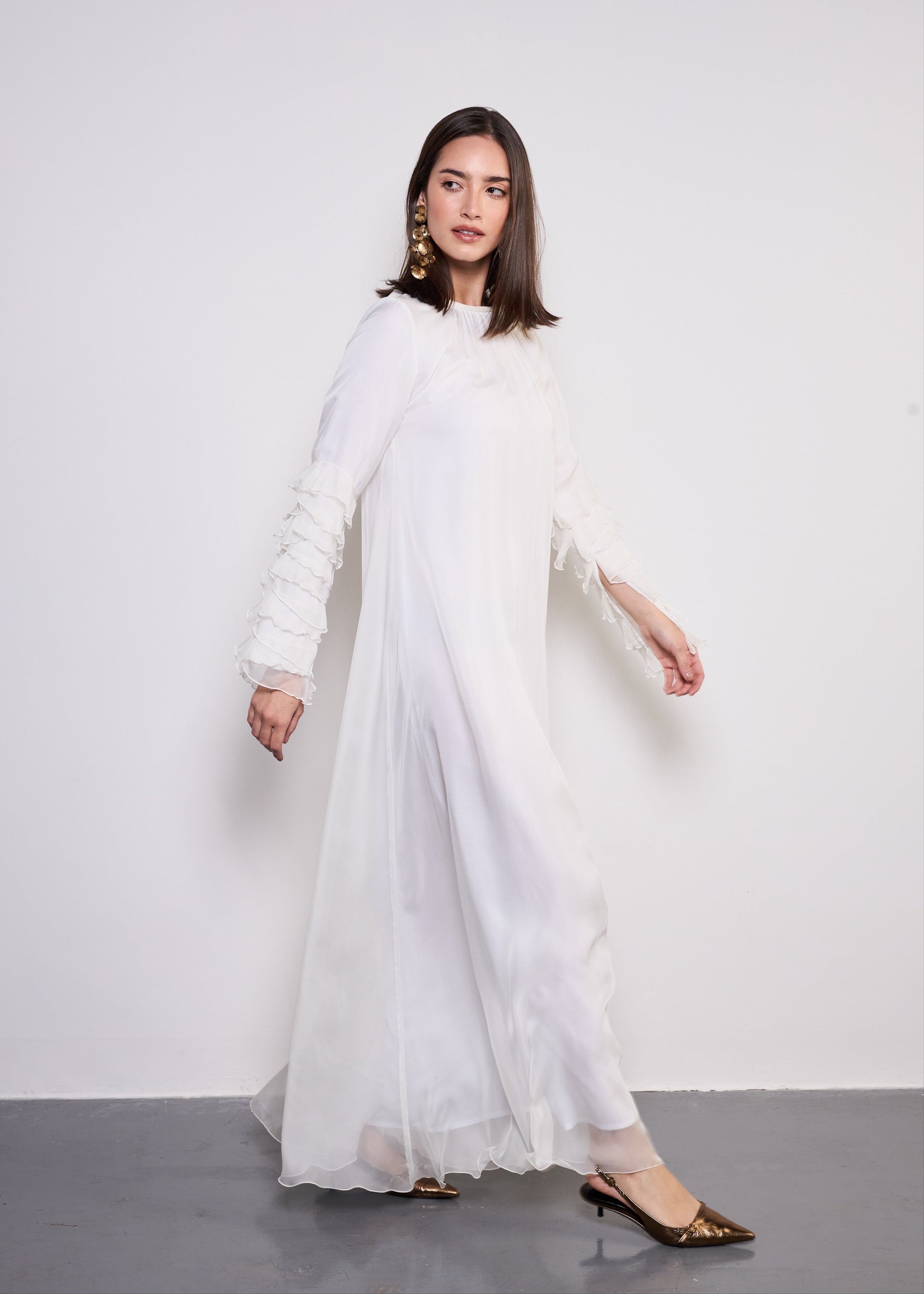 Romantic ruffles and luxurious fabrics, The Dora dress is a perfect blend of grace and modern sophistication.
