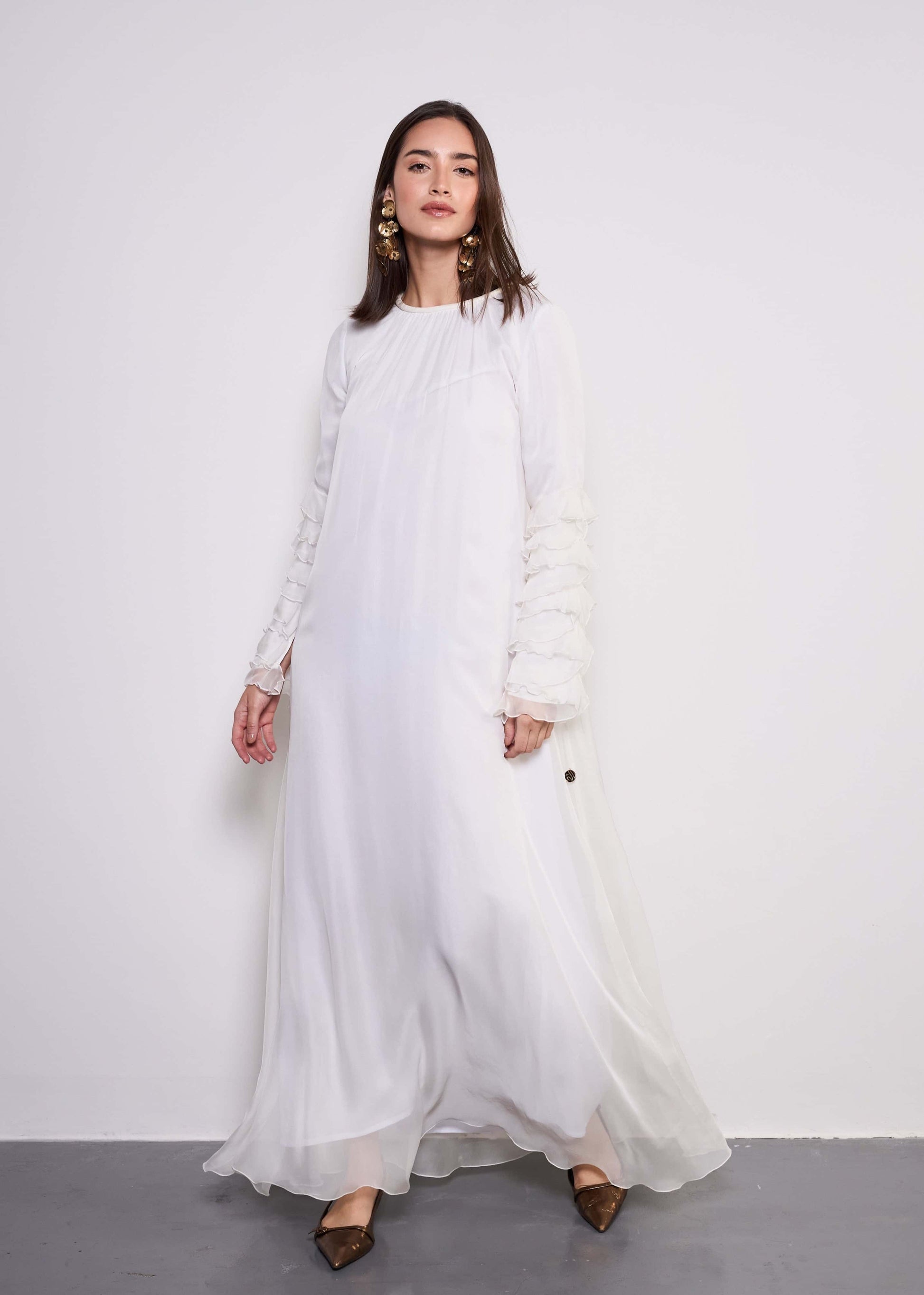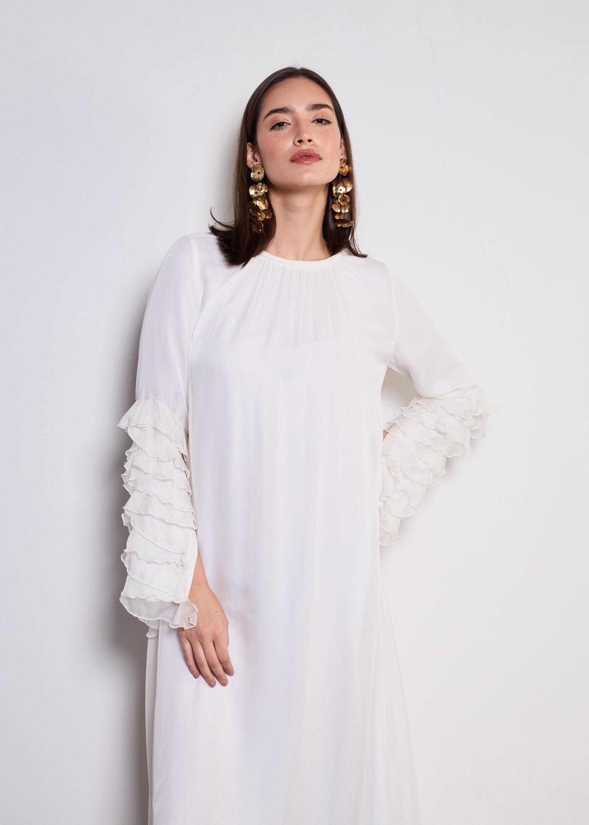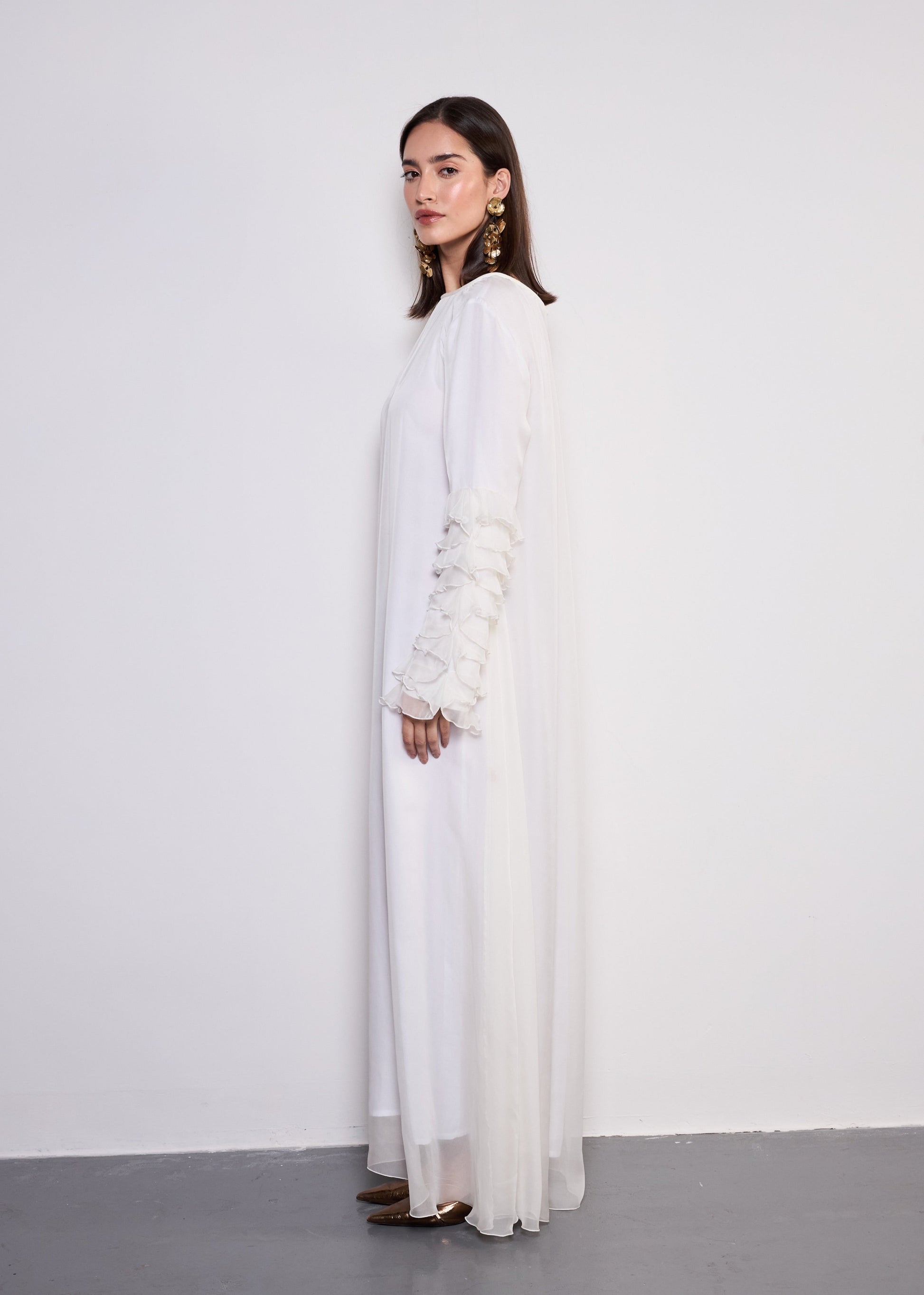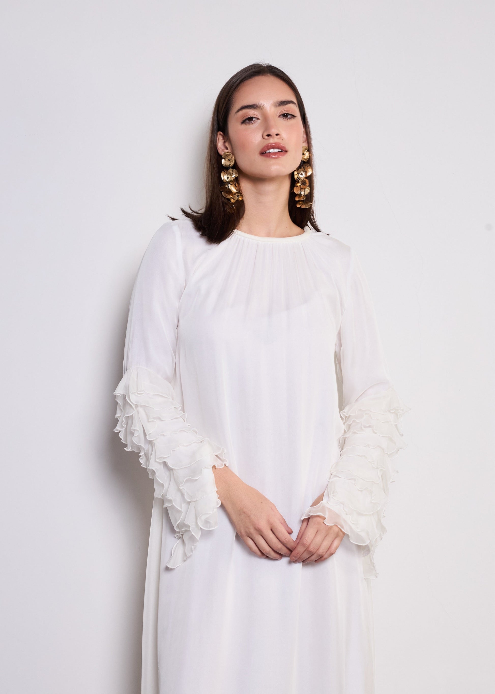 Romantic ruffles and luxurious fabrics, The Dora dress is a perfect blend of grace and modern sophistication.