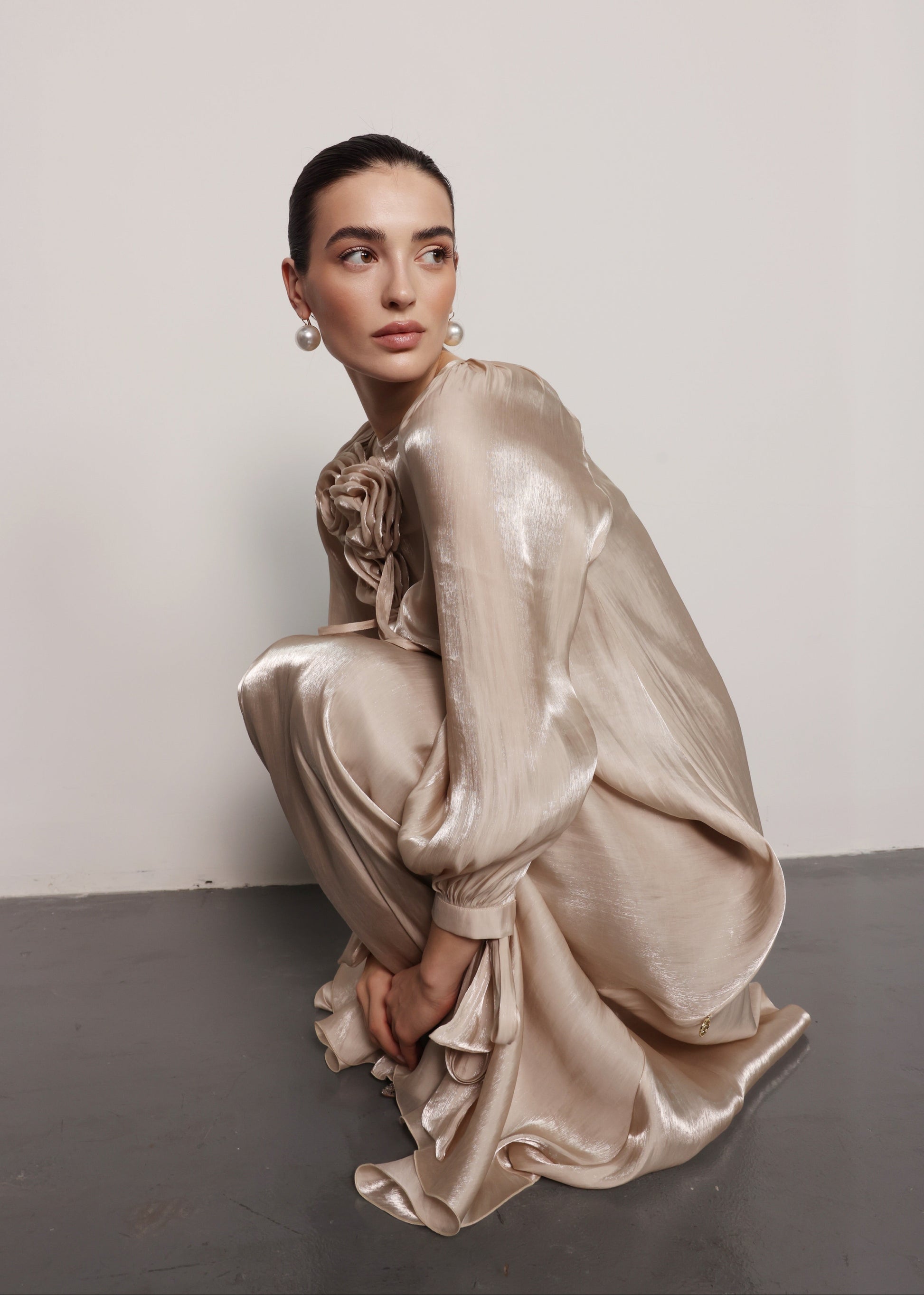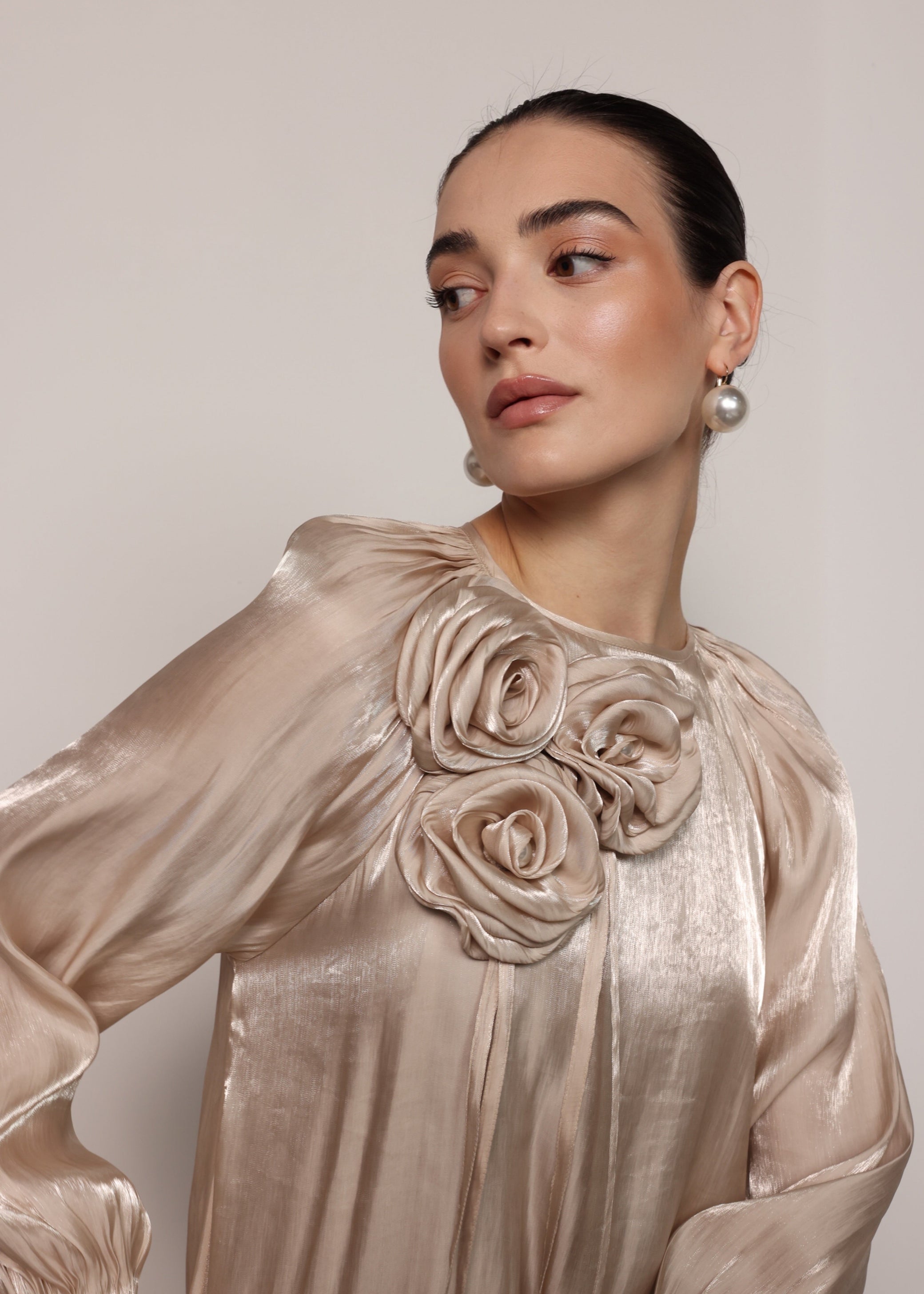 Crafted from luxurious sheer organza with a soft natural lining, the Rose dress offers a breathtaking balance of structure and fluidity.