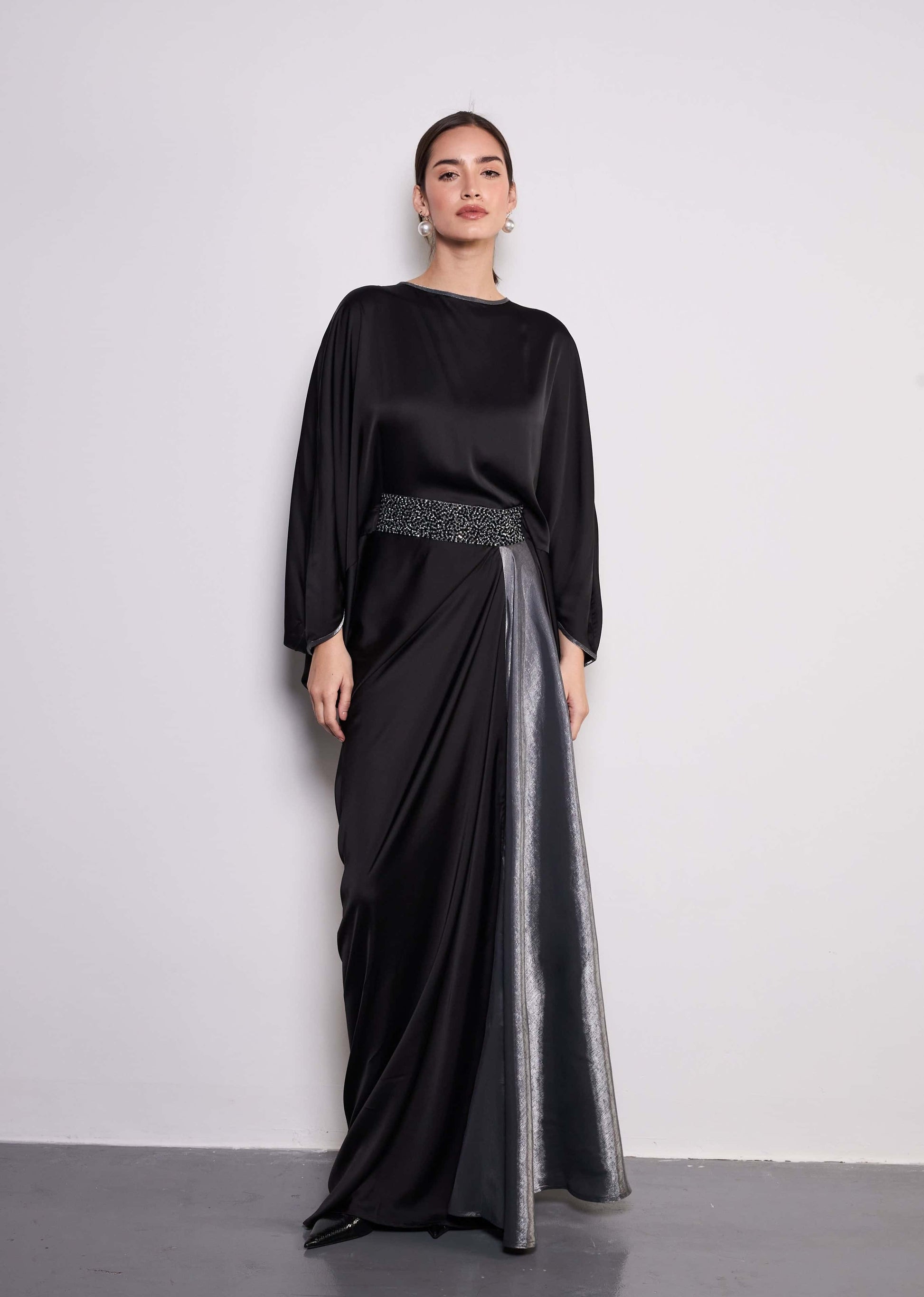 Material: A refined combination of satin and metallic lamé for a luxurious drape and subtle shine.