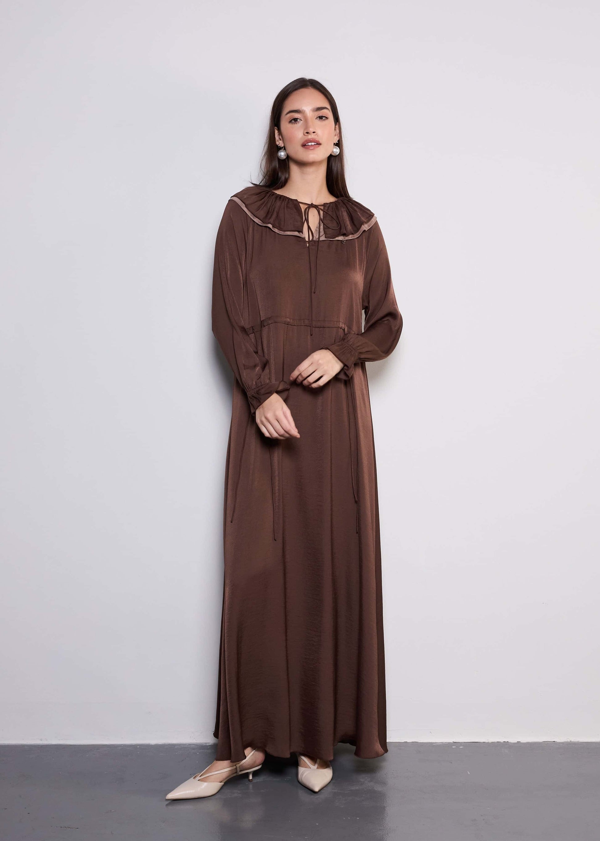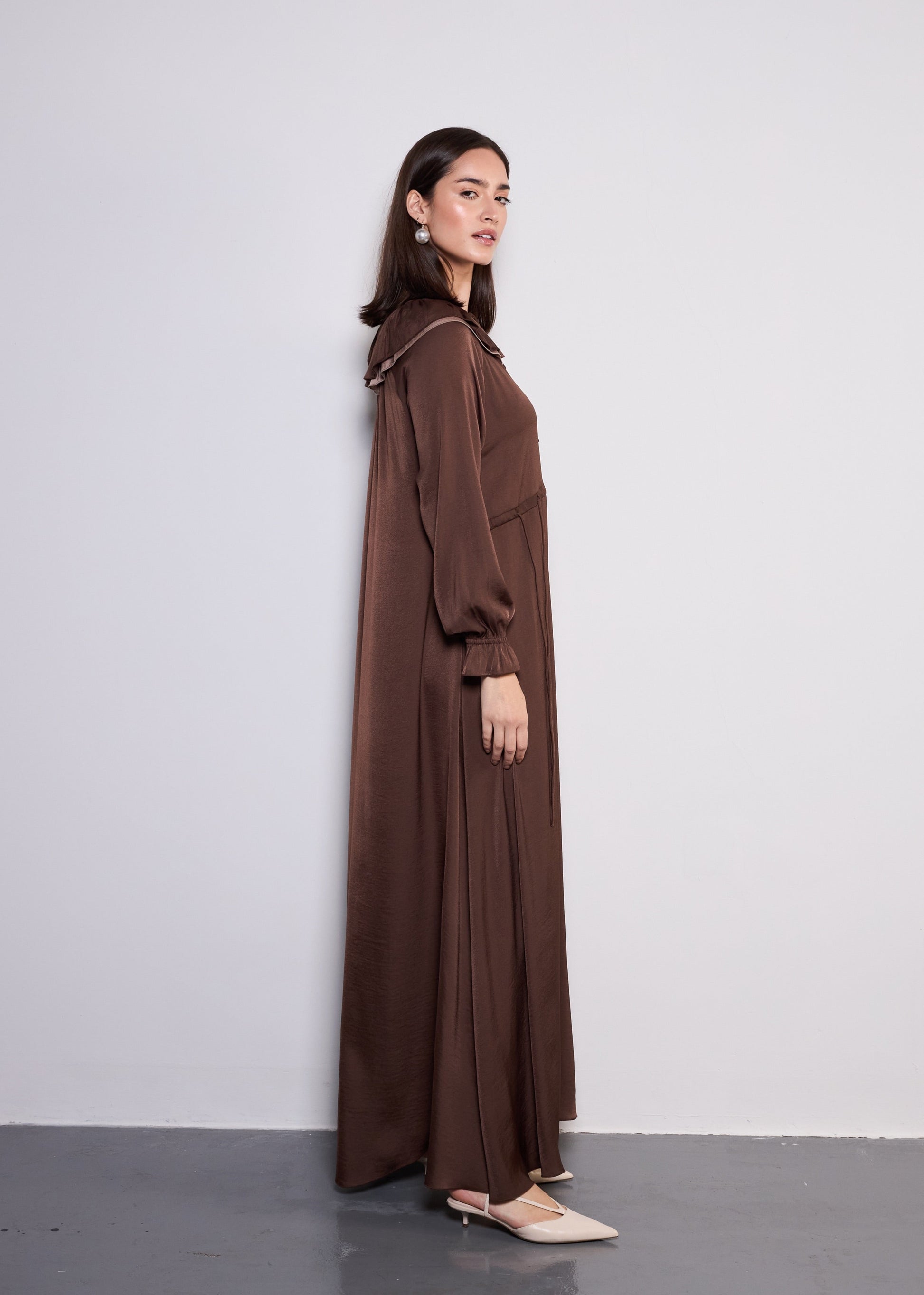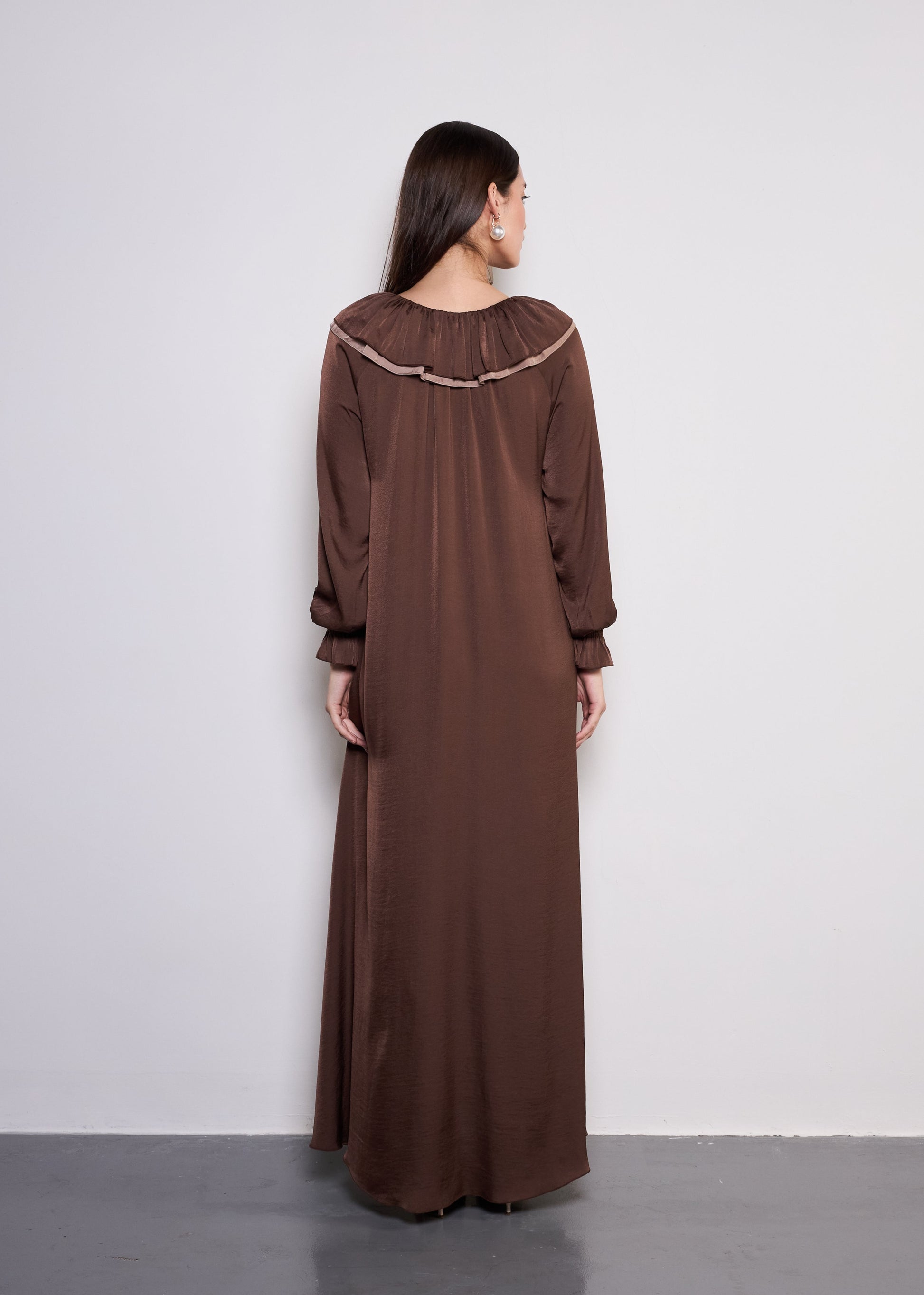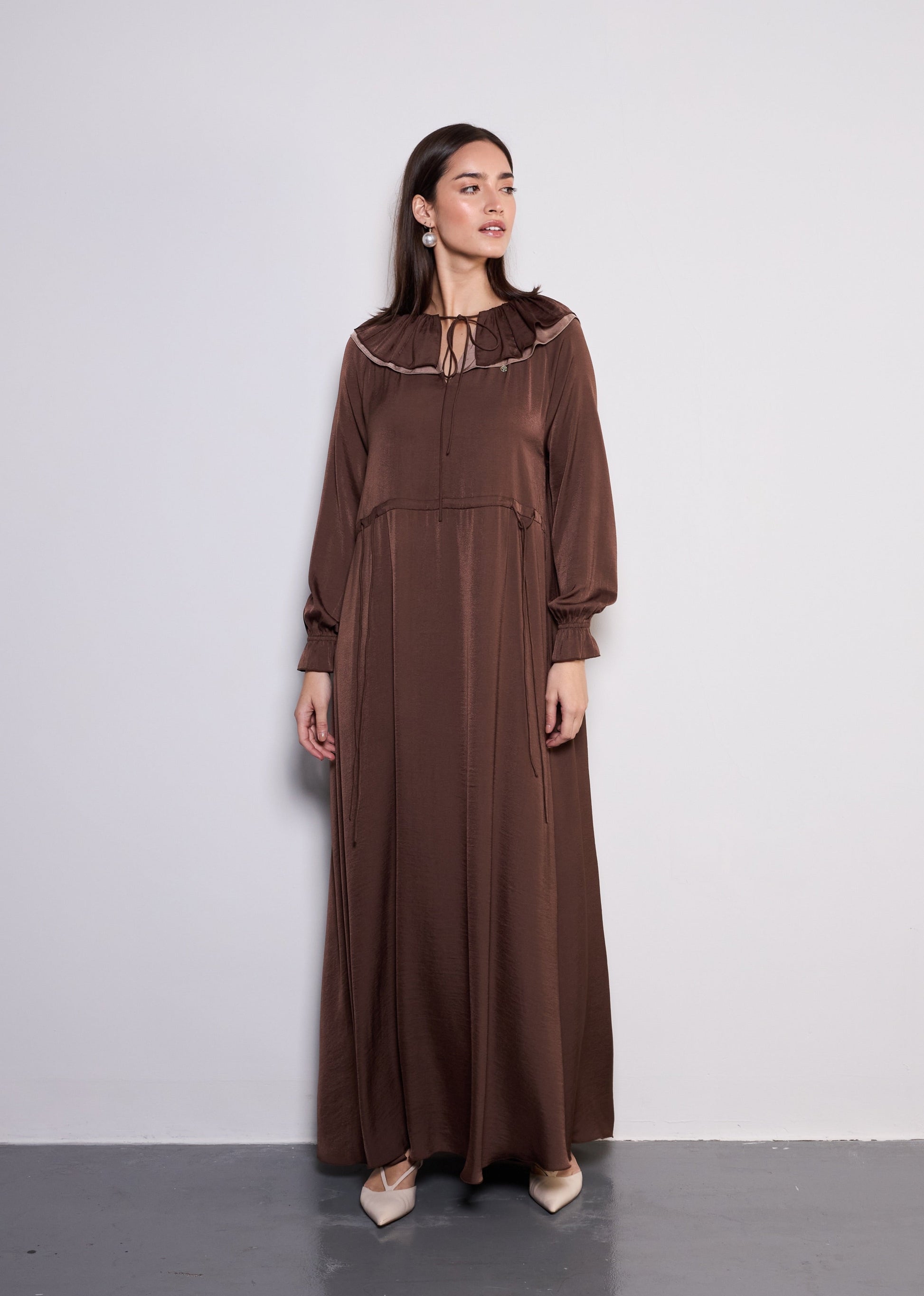 - Design Highlights: Ruffled collar, adding movement and sophistication.