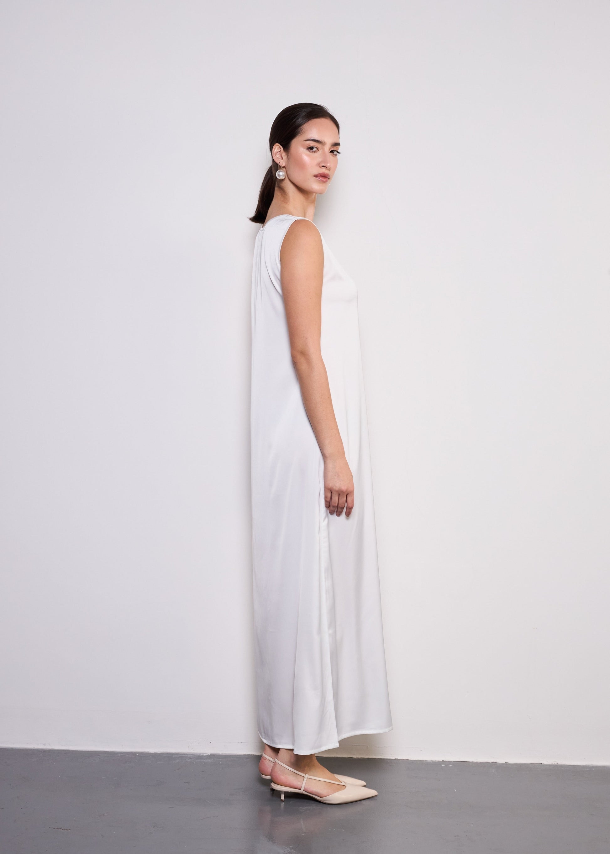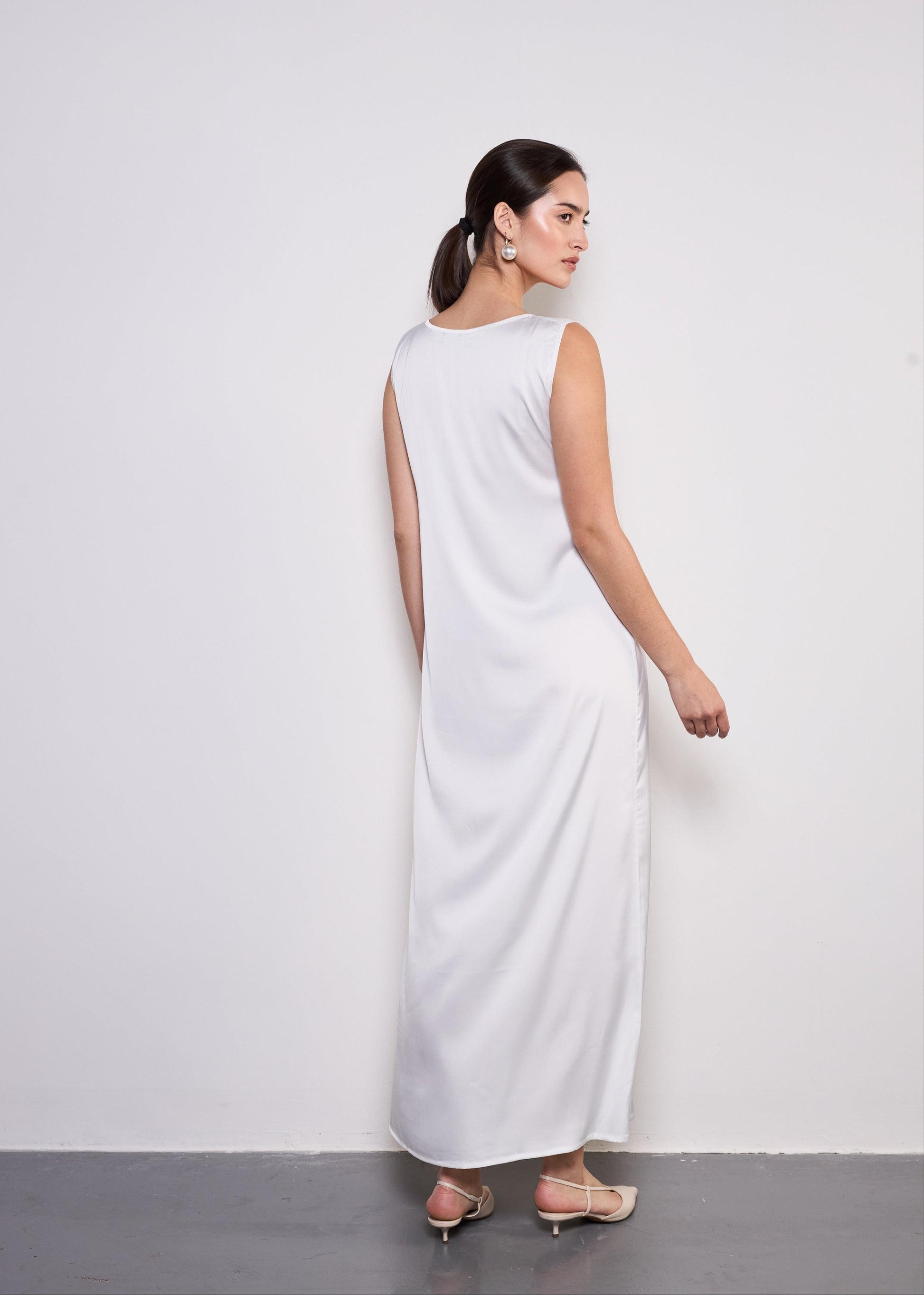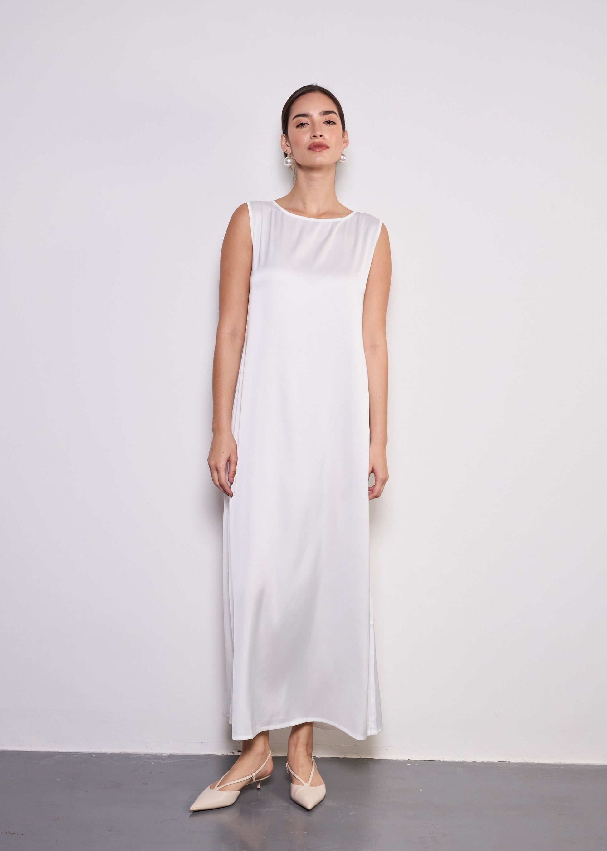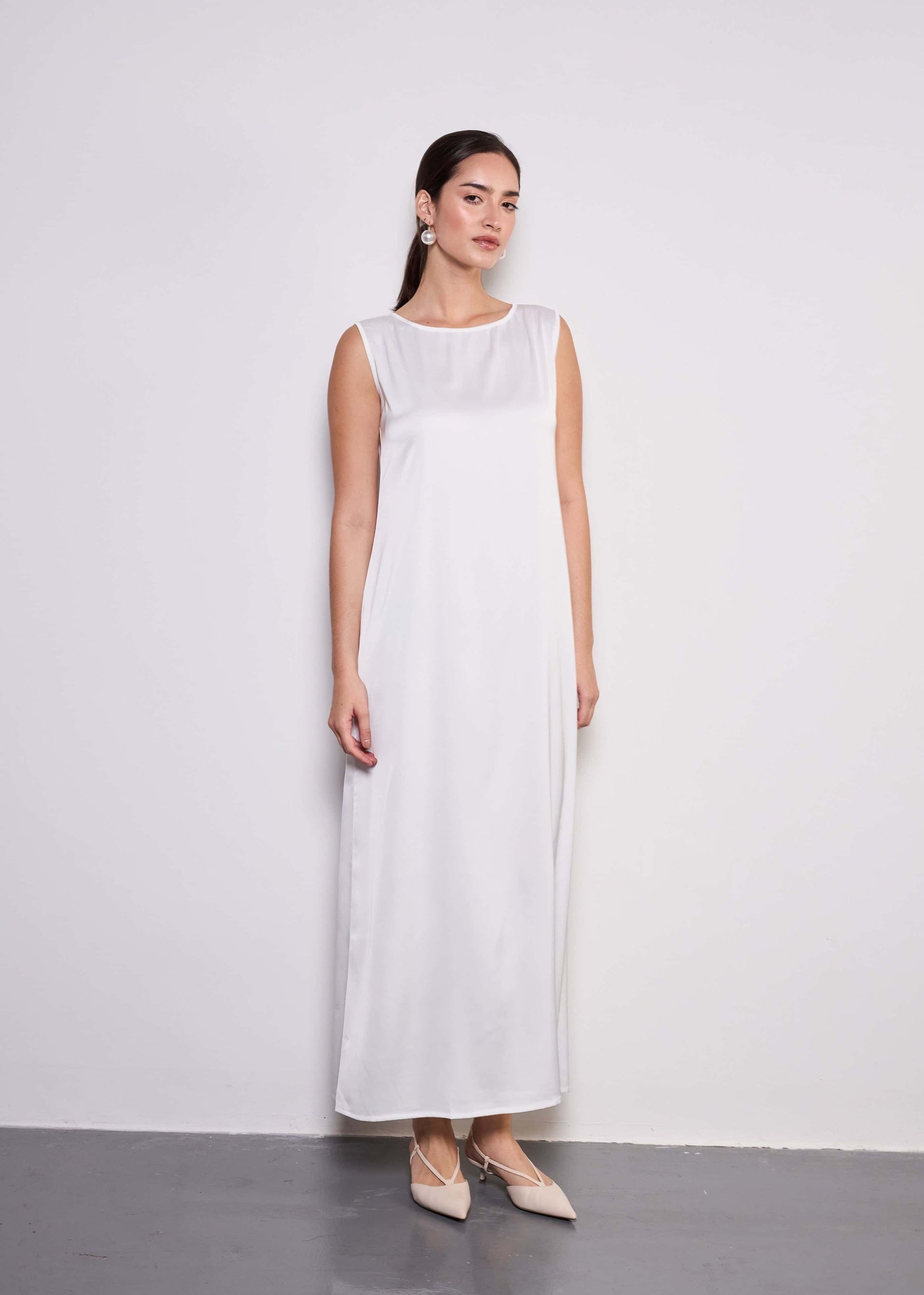 Midi Layer is the perfect essential for effortless layering, designed to complement any abaya with ease. Crafted from breathable and lightweight silky polyester, this base dress ensures comfort while maintaining a sleek and polished look. Ideal for warm weather, it offers a smooth and airy feel, making it a must-have staple for your wardrobe.