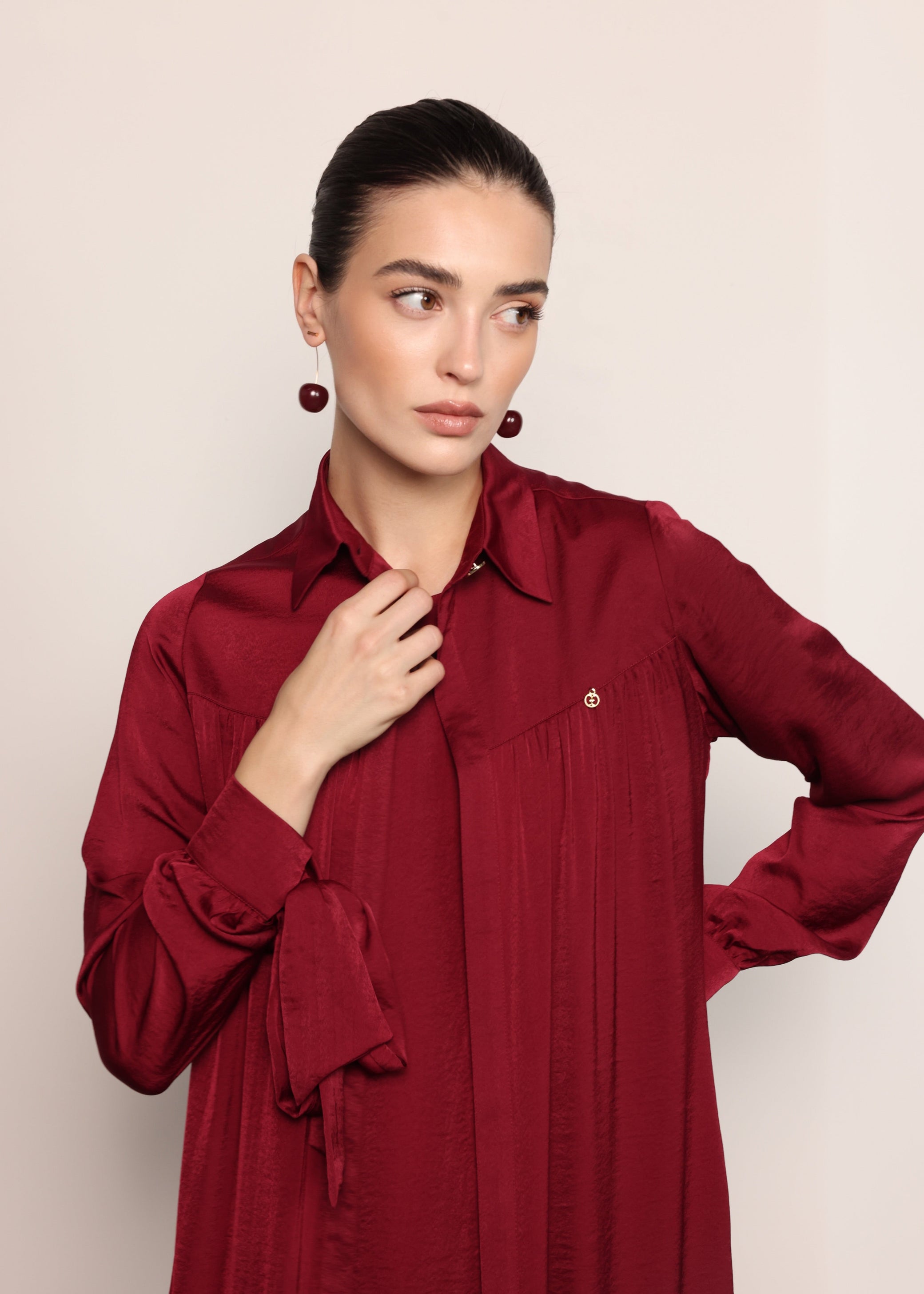 - Design Highlights: Flowing outer layer, Soft pleated front detailing, Tie-detail sleeves