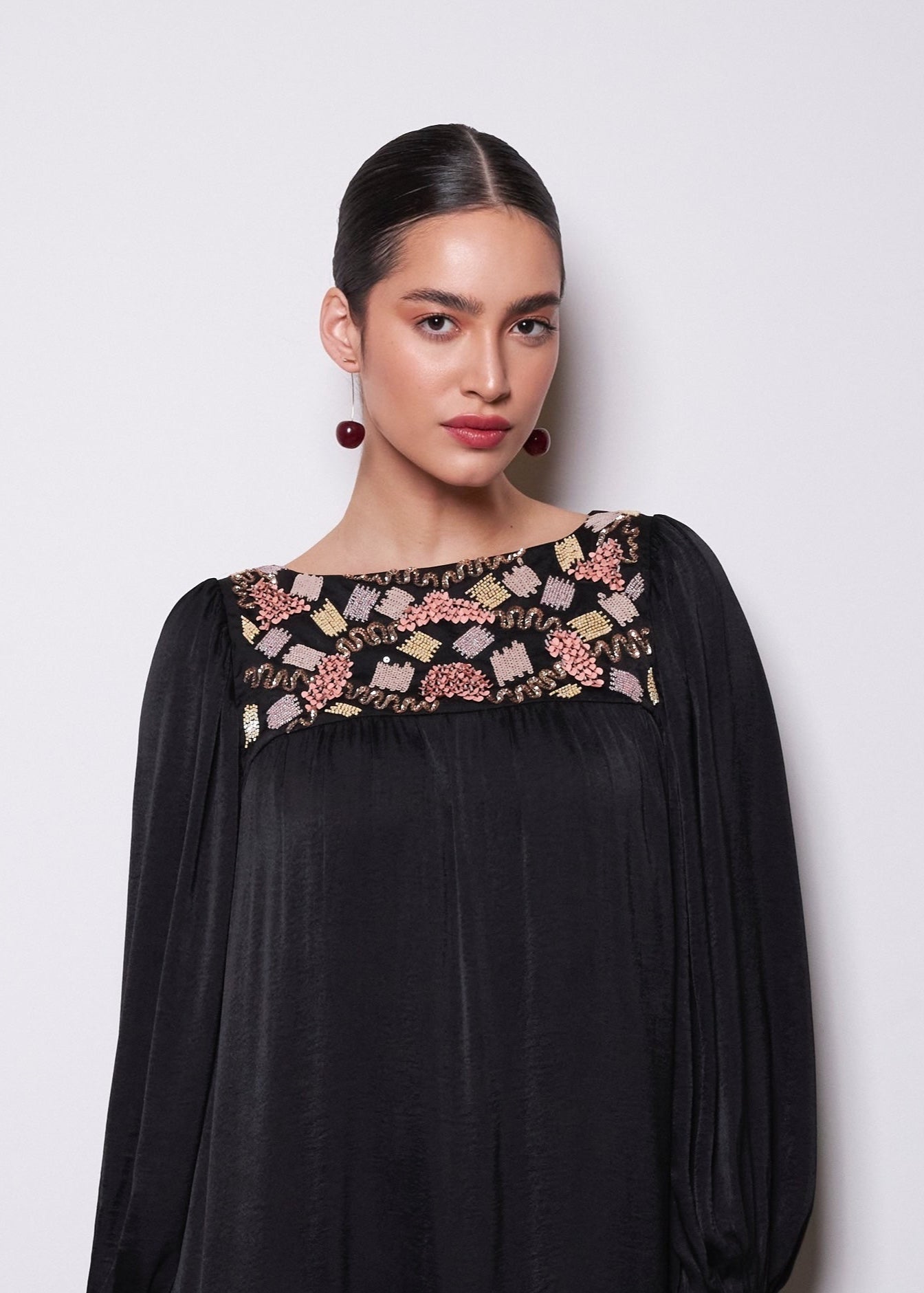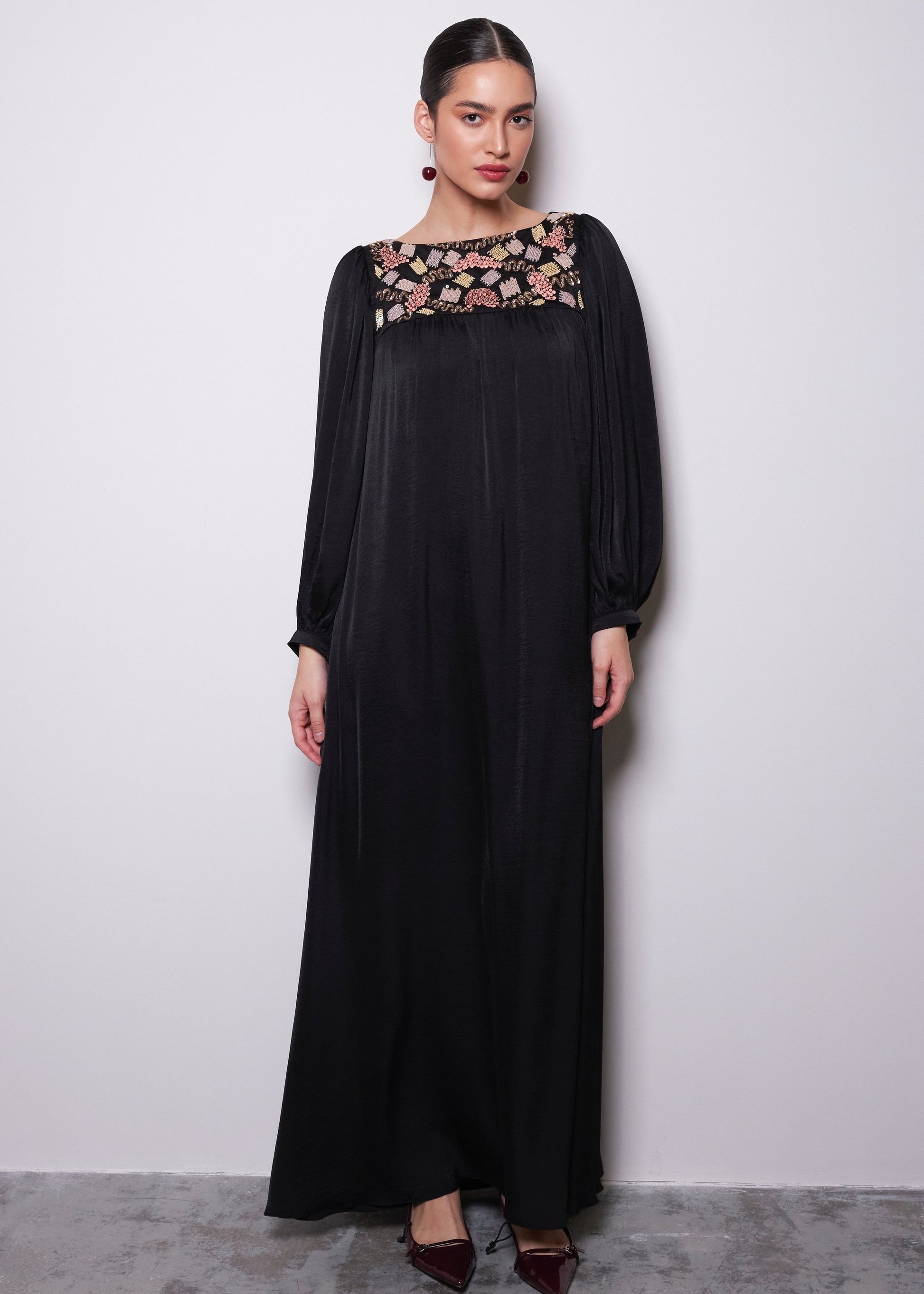 Поднимите свой стиль с Вышивкой Платья, потрясающего изделия, созданного для элегантности и универсальности. Изготовленное из роскошного шелкового сатина, это платье сочетает в себе элегантный дизайн с тонкой вышивкой, создавая вечный шедевр.