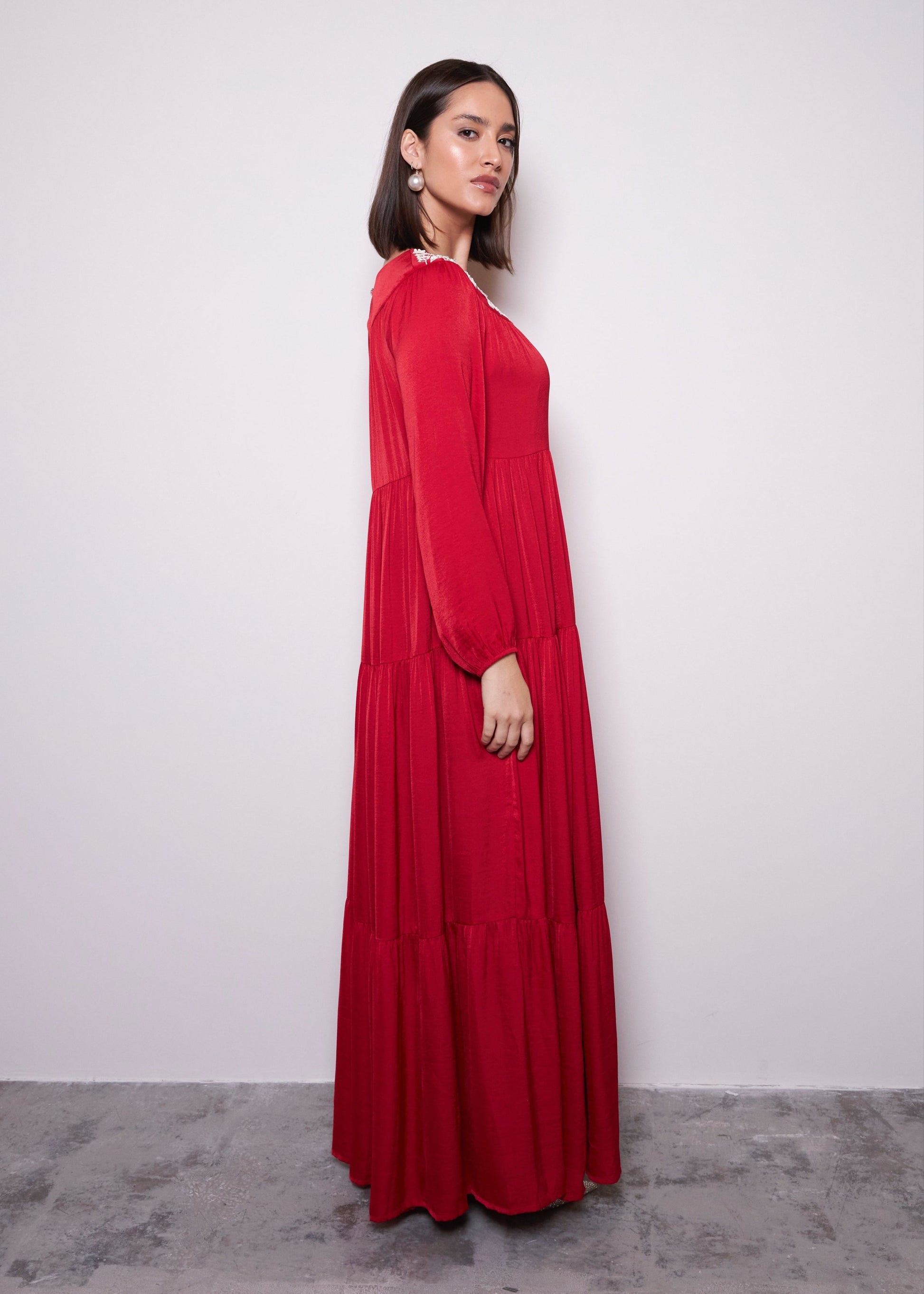 Нежное и сияющее платье Jasmine Dress выполнено из высококачественного шелкового атласа, чтобы добавить вашему гардеробу мягкости. Платье украшено изысканной вышивкой на вырезе, придающей утончённость и женственность. Его струящийся, многоярусный дизайн обеспечивает привлекательный силуэт, сочетая комфорт и элегантность. Идеально подходит как для праздничных торжеств, так и для официальных мероприятий.