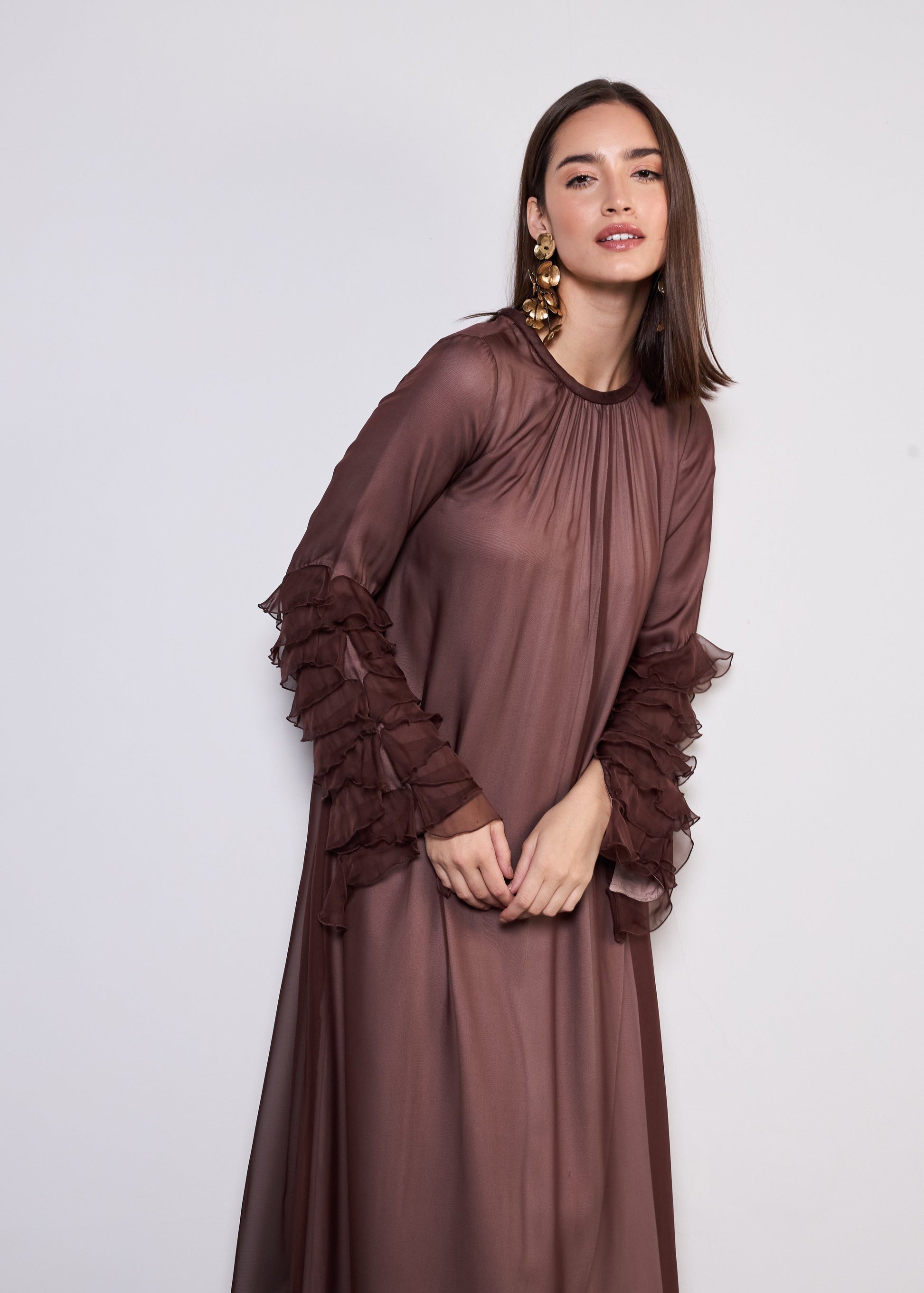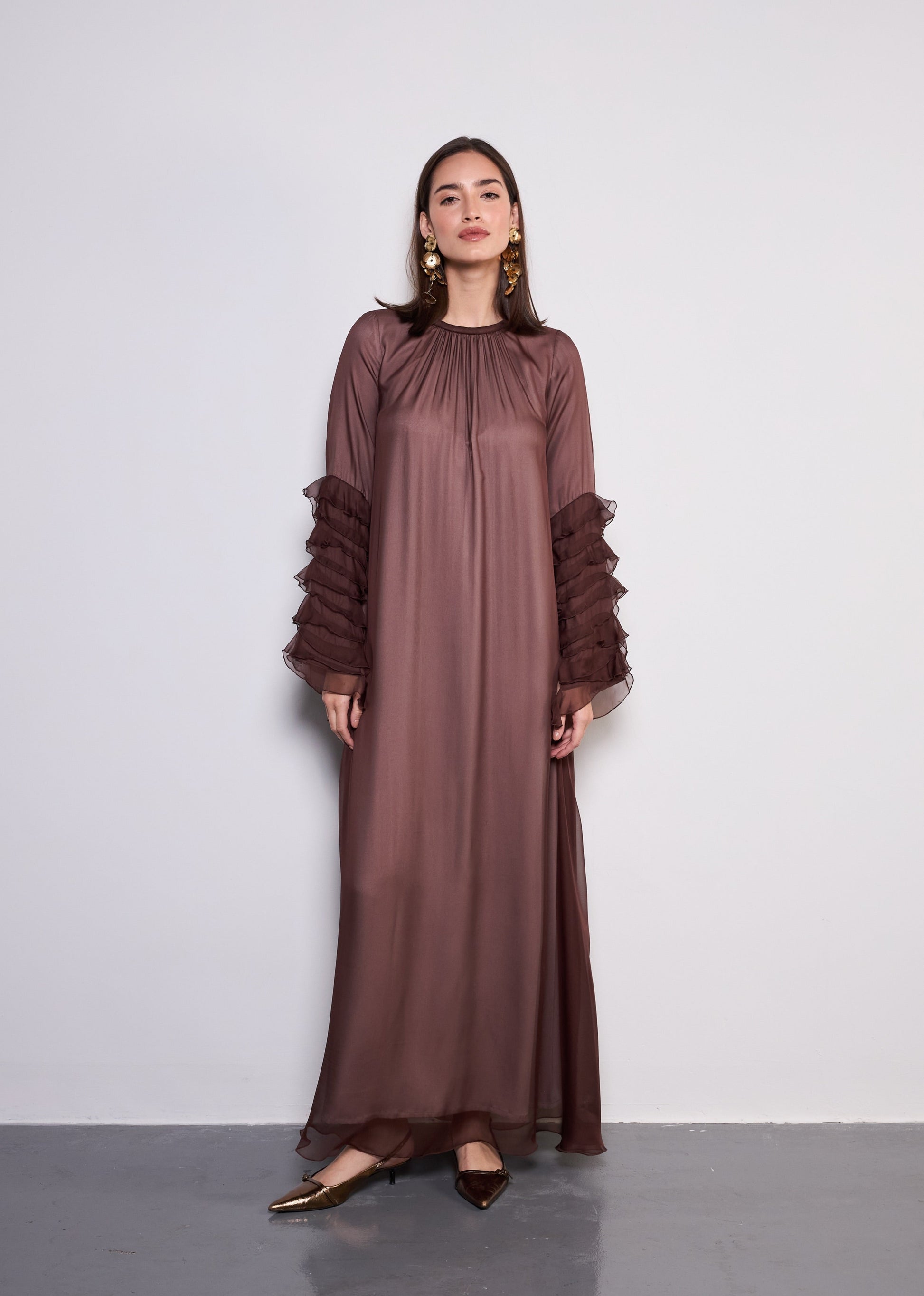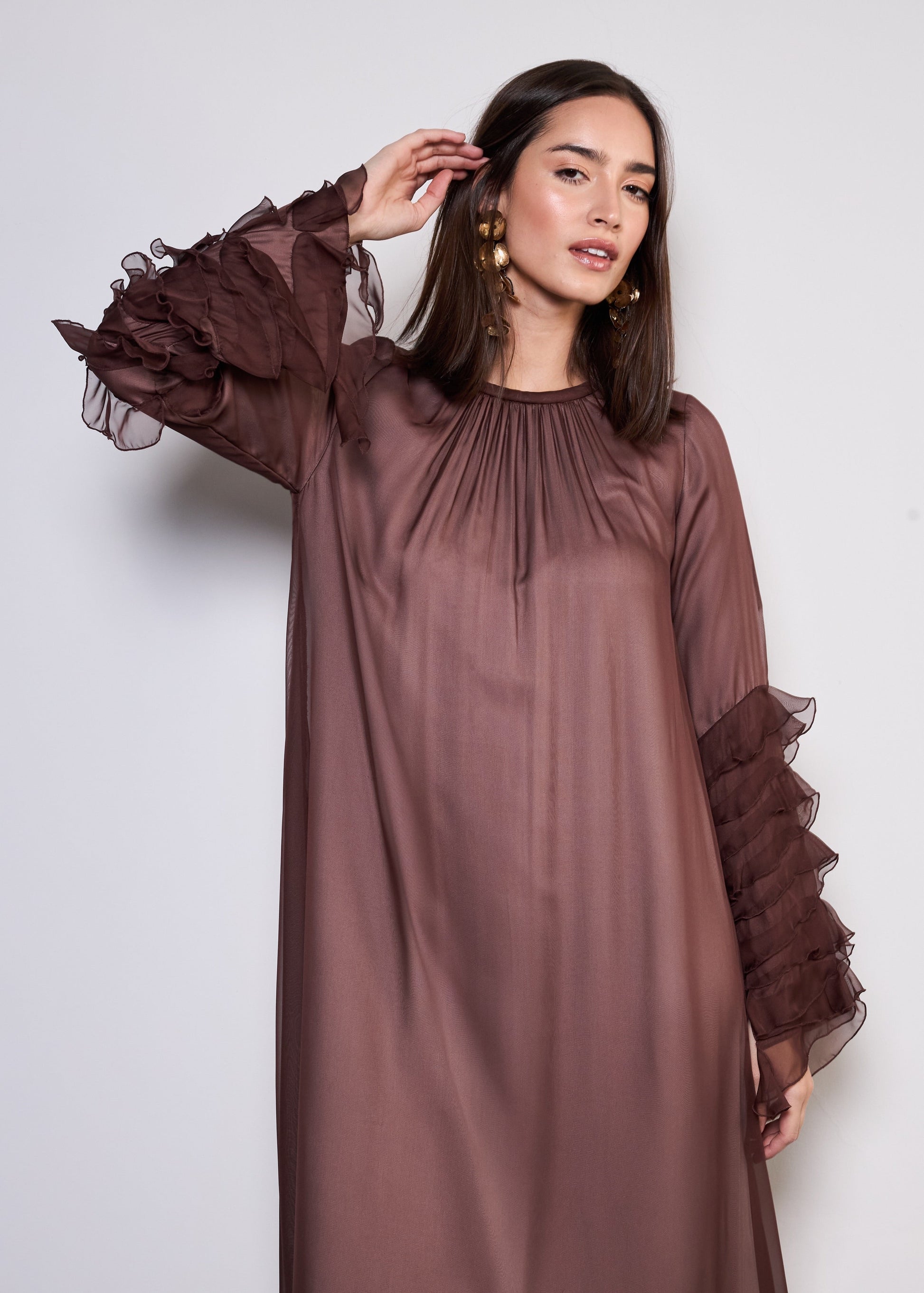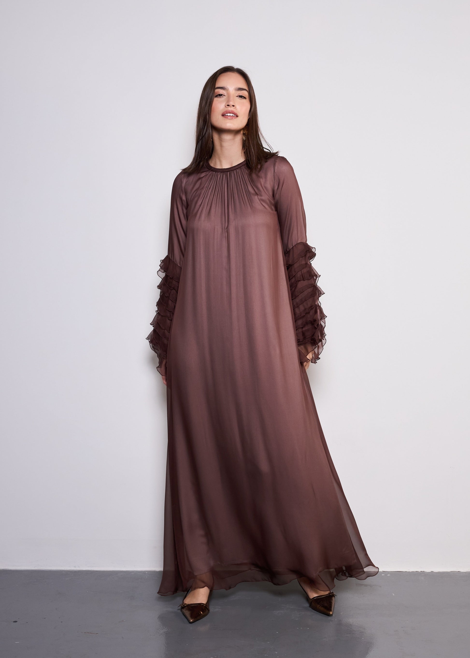Романтичные оборки и роскошные ткани, платье The Dora — идеальное сочетание изящества и современной утонченности.